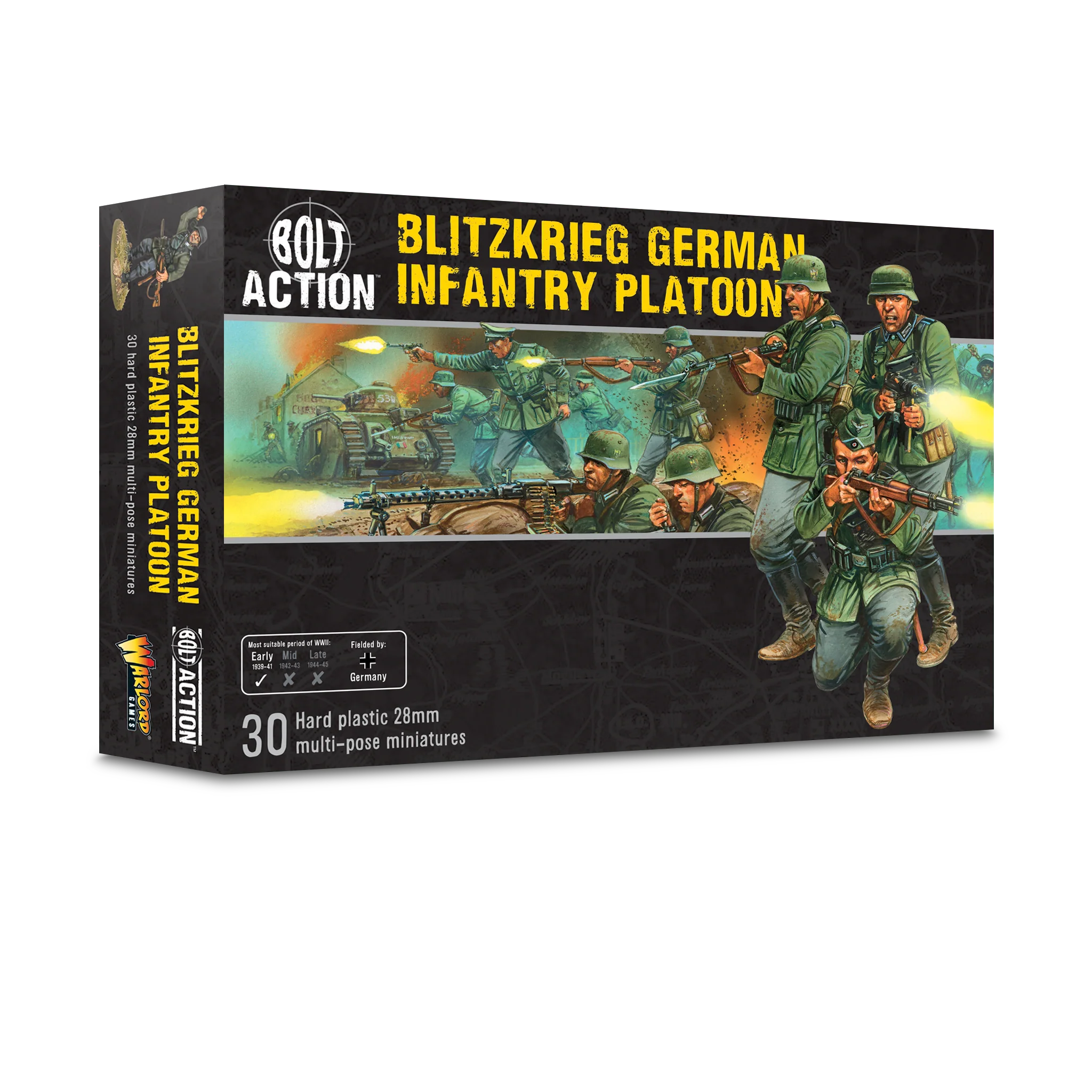 - Enough plastic components to make 30 German infantry miniatures – Including a host of options to allow for different weapon configurations and command models.