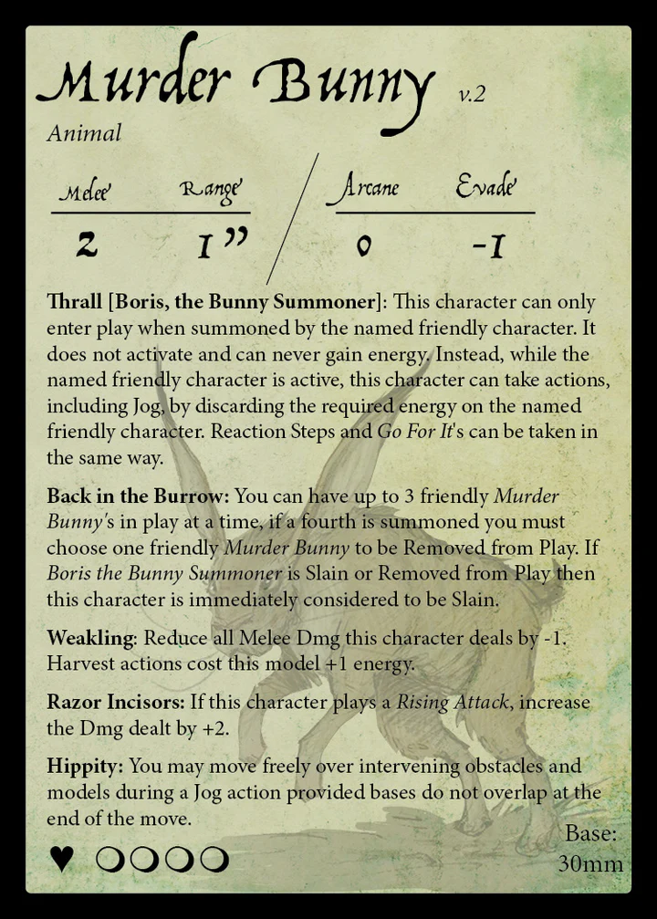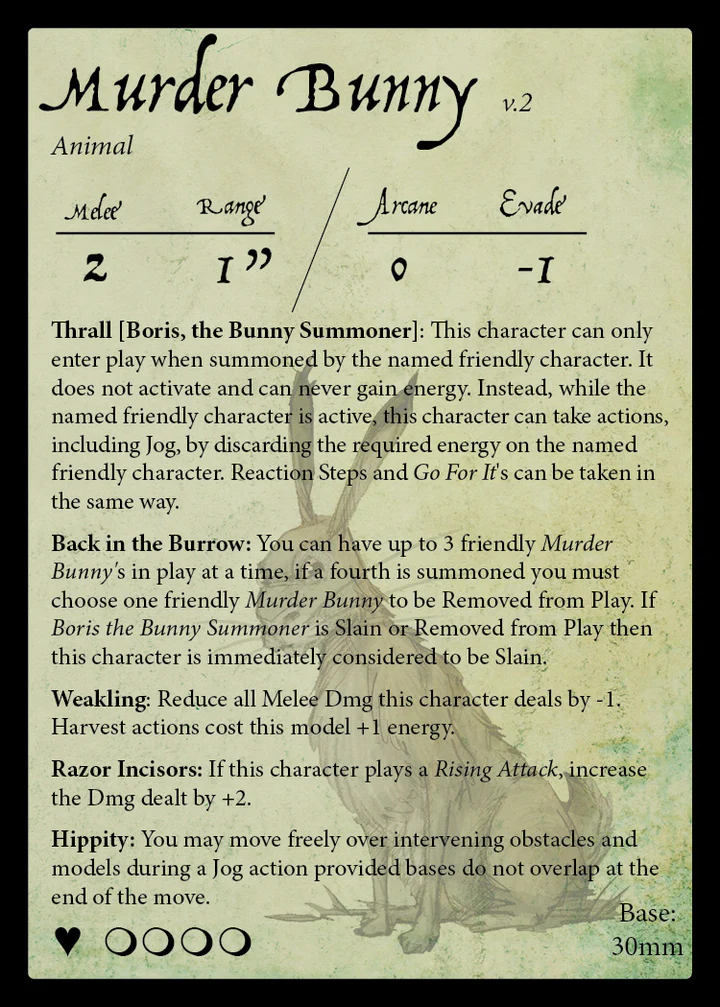 1 x Boris the Bunny Summoner Miniature and Stat Card