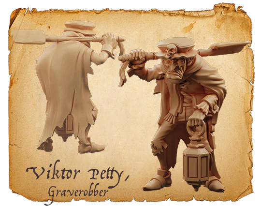 1 x Viktor Petty, figurka Graverobbera, karta statystyk i podstawa.