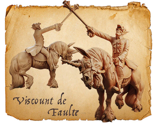 1 x miniatura wicehrabiego de Faulte, karta statystyk i podstawa.