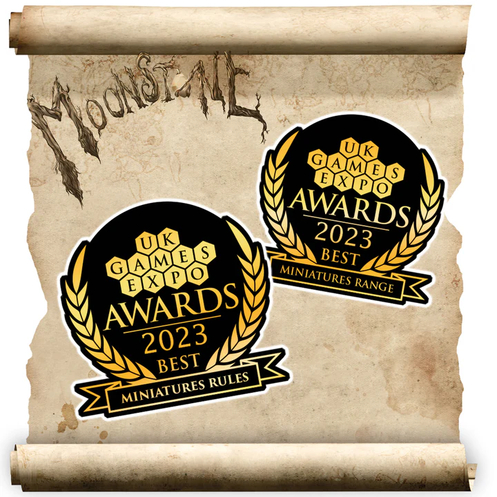 Ten zestaw zawiera wszystko co potrzebujesz aby rozpocząć swoją przygodę z grą Moonstone – ukoronowaną przez sędziów w kategoriach Best Miniatures Range and Best Miniatures Rules podczas UK Games Expo 2023!